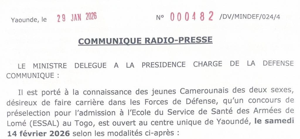© 2024 Ministère de la défense du Cameroun By Cellule Informatique CAB/MINDEF