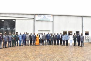 Il a ensuite exposé les objectifs de cette infrastructure : autonomiser les Armées dans la confection des effets d’habillement, professionnaliser davantage les techniciens militaires et promouvoir le savoir-faire local. Elle contribue au renforcement de l’autonomie logistique des Forces de Défense et à la valorisation des compétences locales. Le moment symbolique de la coupure du ruban par le MINDEF, accompagné des autres autorités, a marqué l’ouverture officielle de l’atelier.