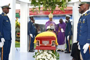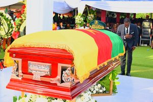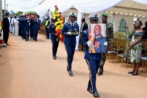 Upon arrival of Minister Beti Assomo, cadet officers bearing the casket proceeded to the catafalque, followed by the rendering of military honors in his honour.