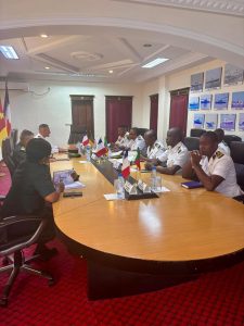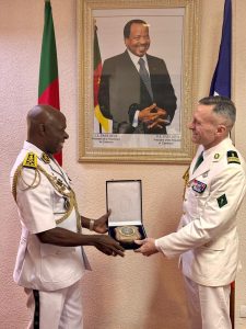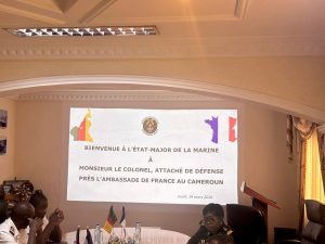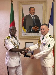 Comme il est de tradition à la Marine, le Colonel DUJON a reçu, des mains du Chef d’État-Major de la Marine, un présent de bienvenue, tout en lui souhaitant un bon séjour au Cameroun.